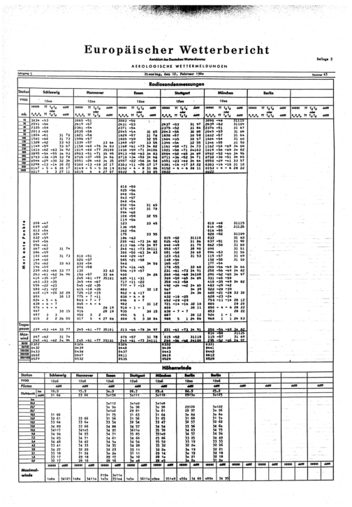 Europäischer Wetterbericht. Beilage 1, Bodenwettermeldungen. 1976-1994