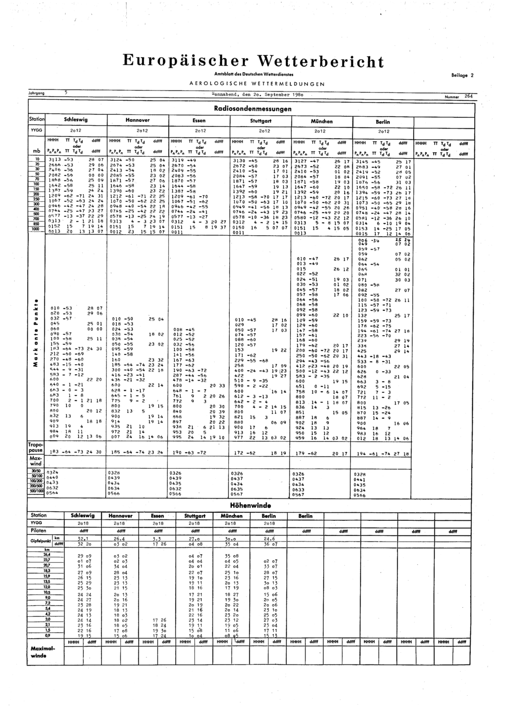 Europäischer Wetterbericht. Beilage 1, Bodenwettermeldungen. 1976-1994