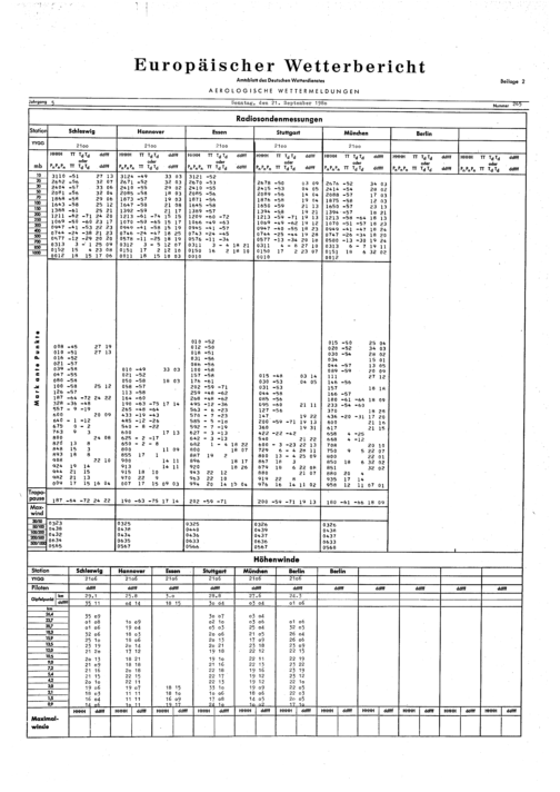 Europäischer Wetterbericht. Beilage 1, Bodenwettermeldungen. 1976-1994