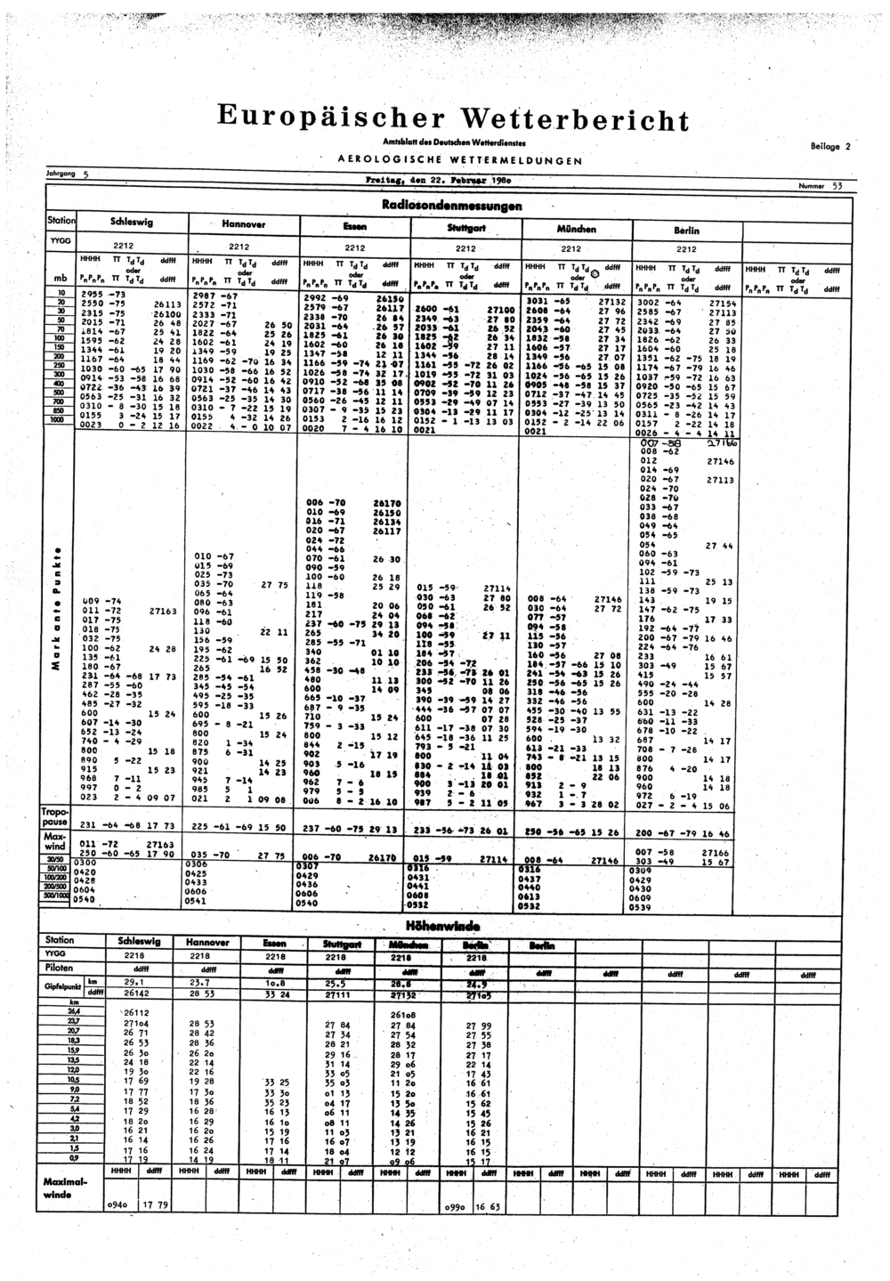 Europäischer Wetterbericht. Beilage 1, Bodenwettermeldungen. 1976-1994