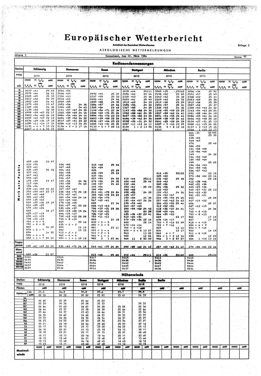 Europäischer Wetterbericht. Beilage 1, Bodenwettermeldungen. 1976-1994
