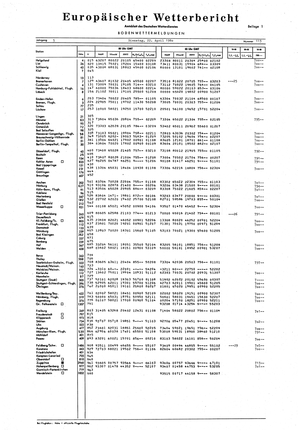 Europäischer Wetterbericht. Beilage 1, Bodenwettermeldungen. 1976-1994