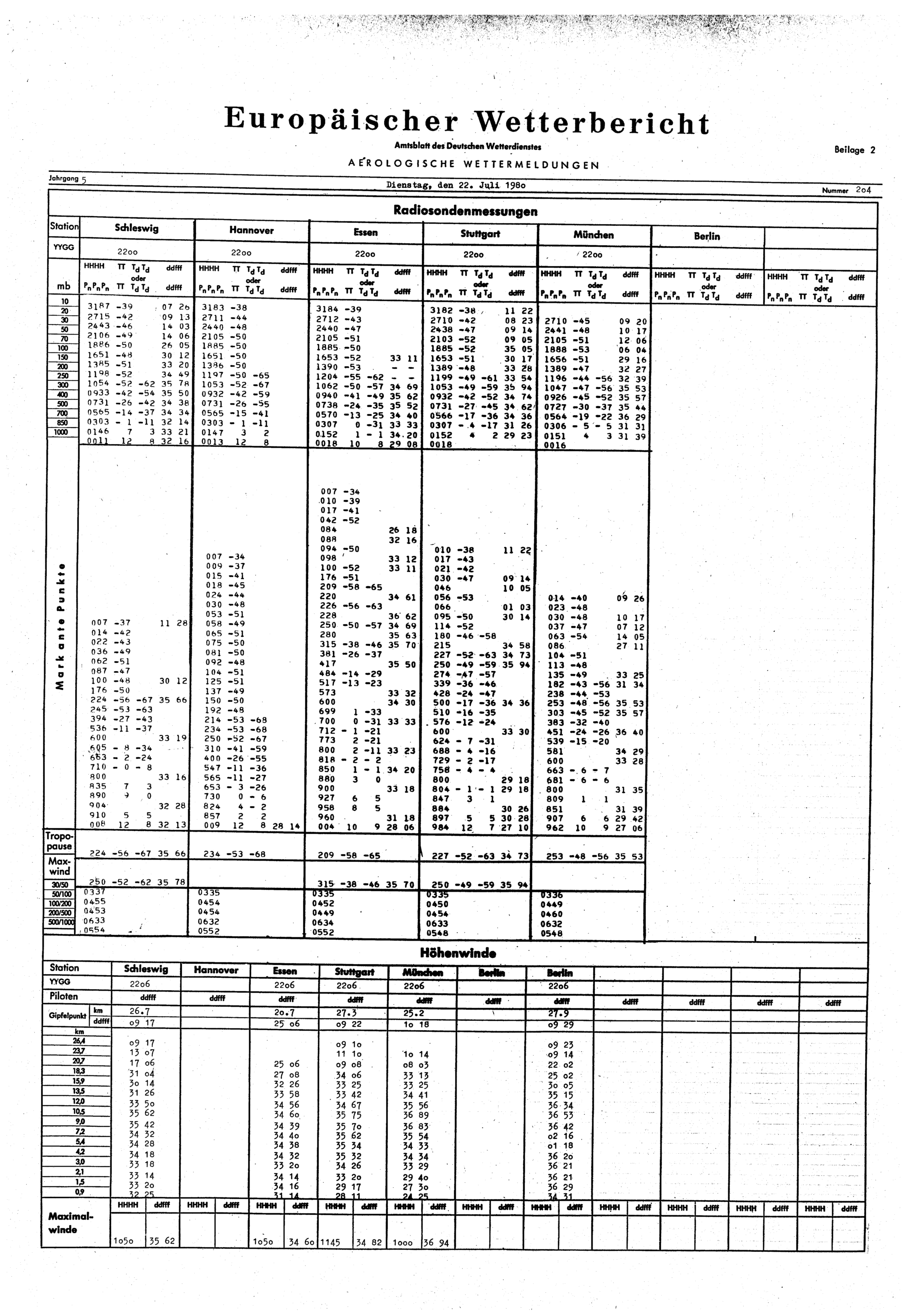 Europäischer Wetterbericht. Beilage 1, Bodenwettermeldungen. 1976-1994