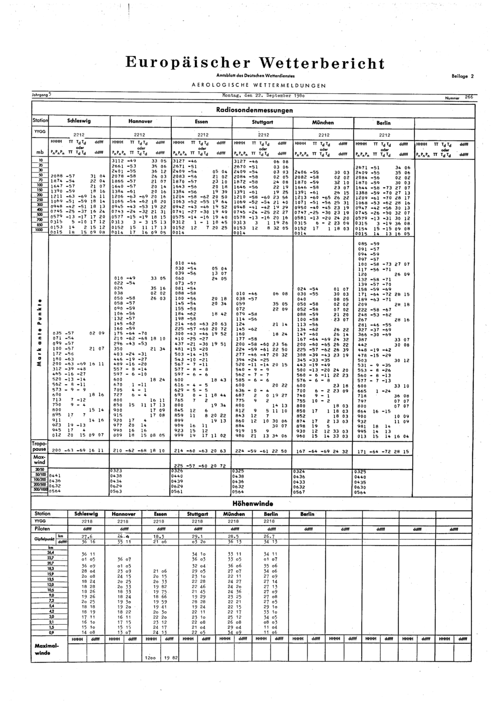 Europäischer Wetterbericht. Beilage 1, Bodenwettermeldungen. 1976-1994