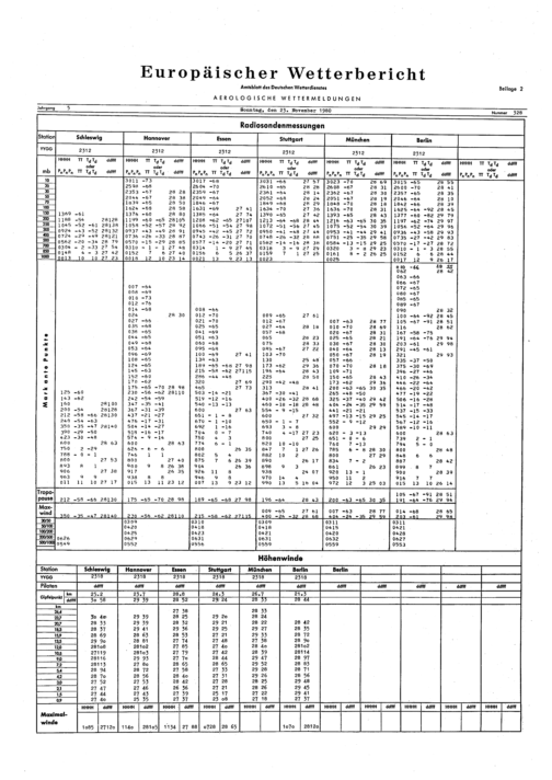 Europäischer Wetterbericht. Beilage 1, Bodenwettermeldungen. 1976-1994