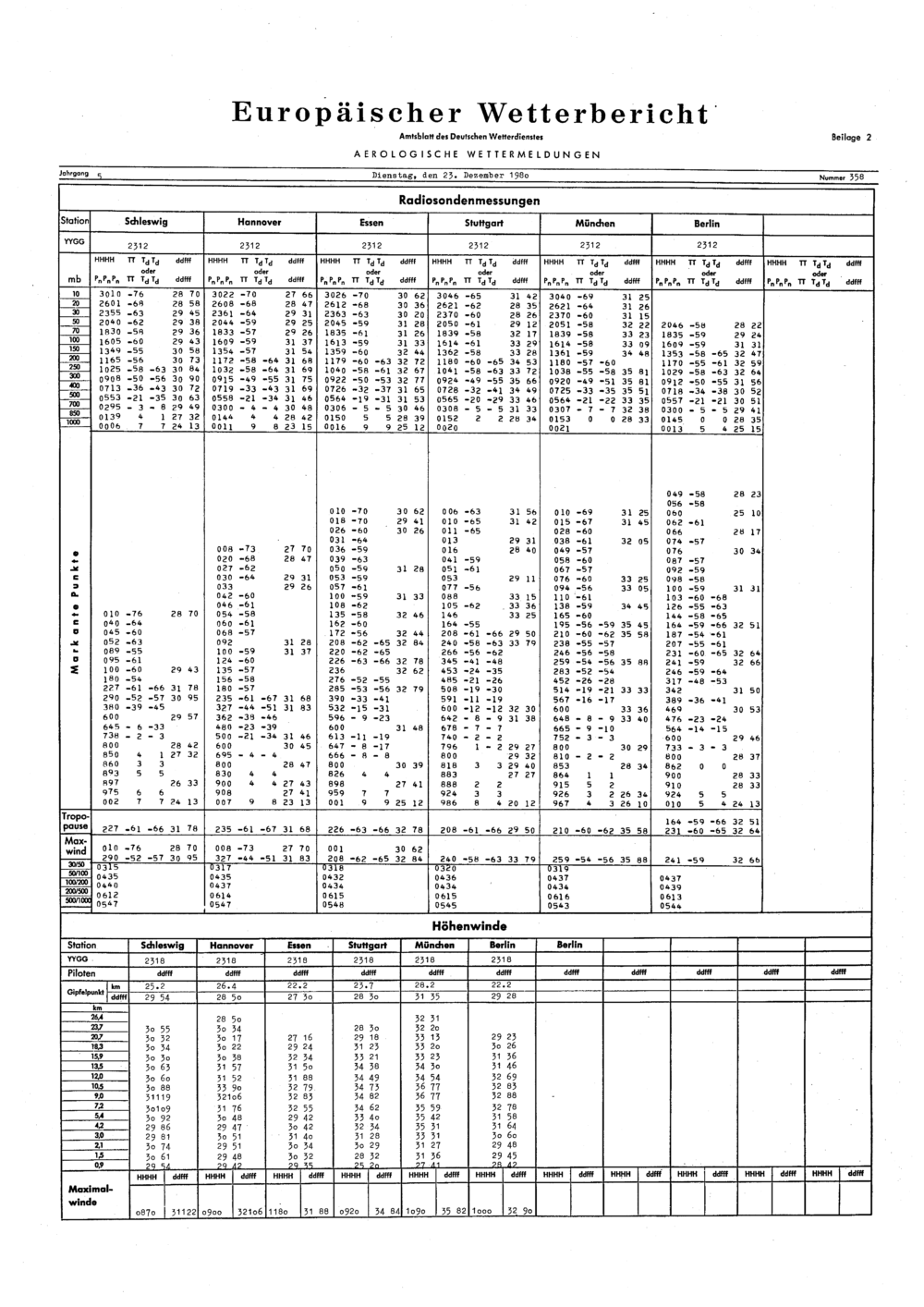 Europäischer Wetterbericht. Beilage 1, Bodenwettermeldungen. 1976-1994