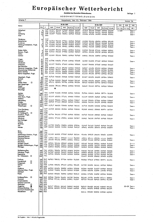 Europäischer Wetterbericht. Beilage 1, Bodenwettermeldungen. 1976-1994