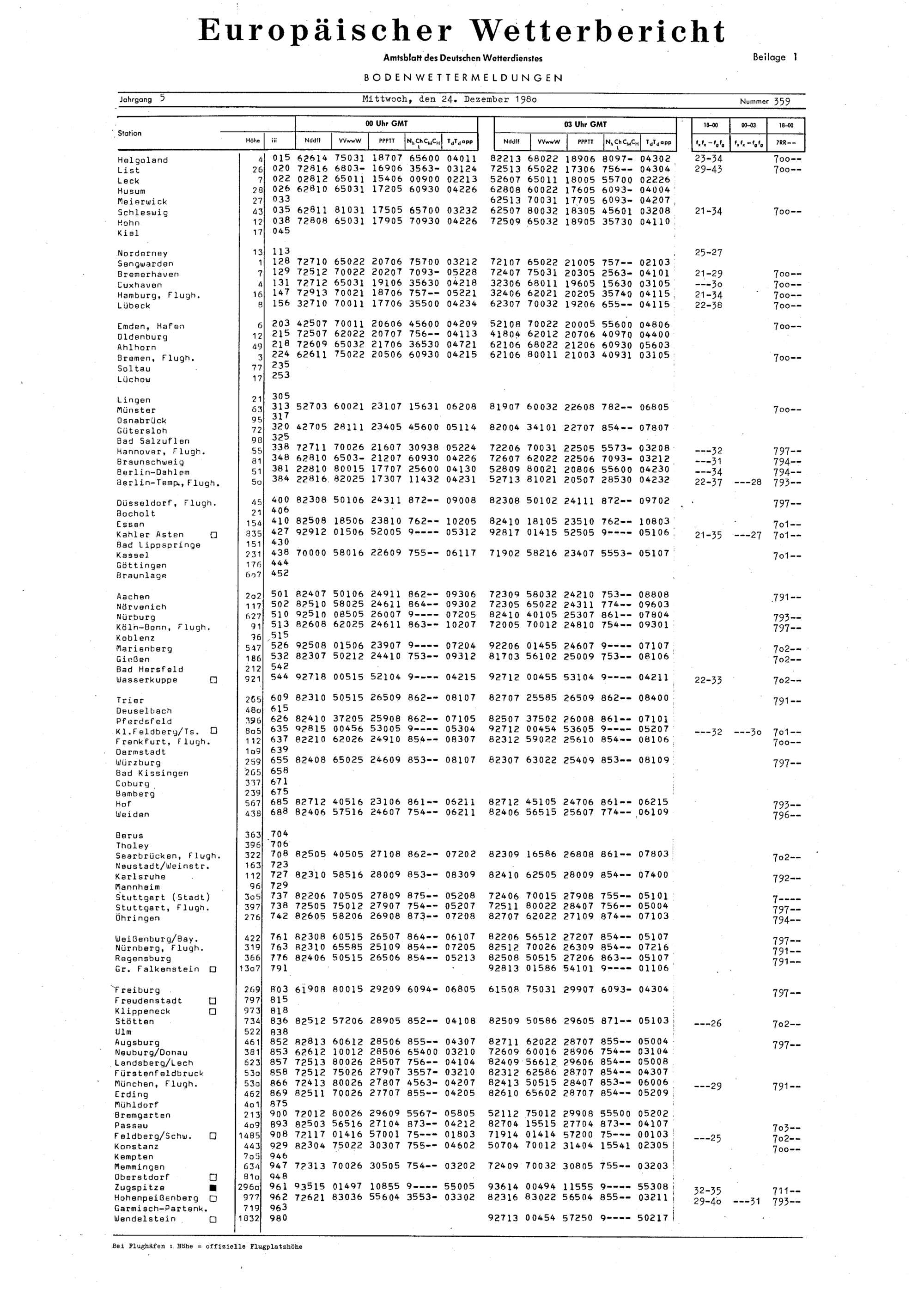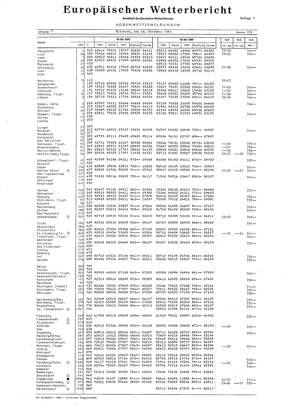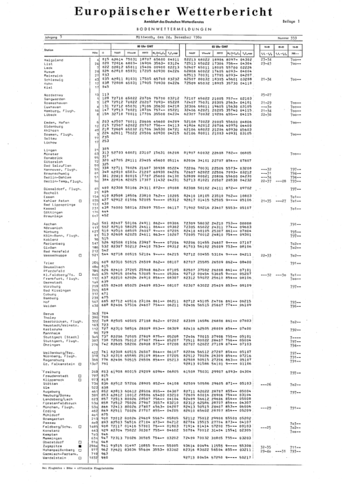 Europäischer Wetterbericht. Beilage 1, Bodenwettermeldungen. 1976-1994