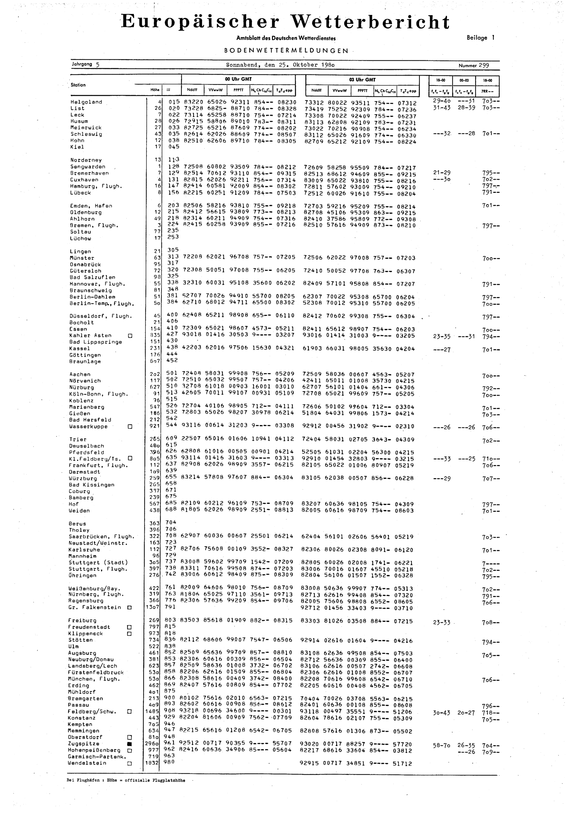Europäischer Wetterbericht. Beilage 1, Bodenwettermeldungen. 1976-1994