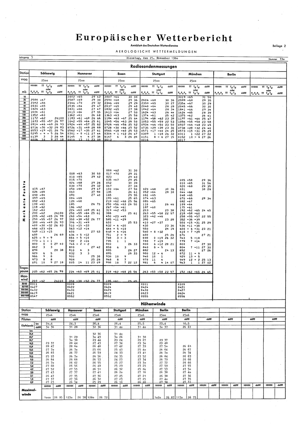 Europäischer Wetterbericht. Beilage 1, Bodenwettermeldungen. 1976-1994