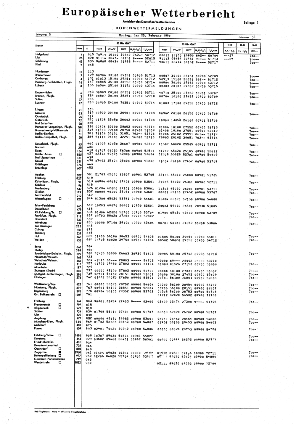 Europäischer Wetterbericht. Beilage 1, Bodenwettermeldungen. 1976-1994