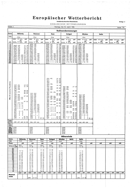 Europäischer Wetterbericht. Beilage 1, Bodenwettermeldungen. 1976-1994