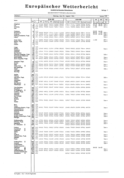 Europäischer Wetterbericht. Beilage 1, Bodenwettermeldungen. 1976-1994