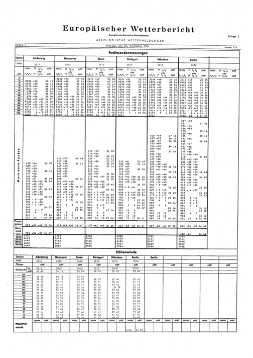 Europäischer Wetterbericht. Beilage 1, Bodenwettermeldungen. 1976-1994