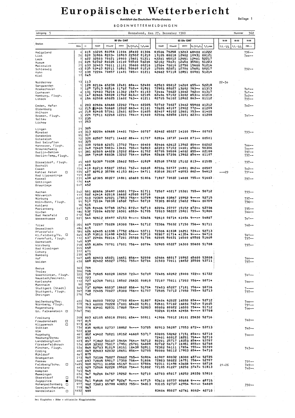 Europäischer Wetterbericht. Beilage 1, Bodenwettermeldungen. 1976-1994