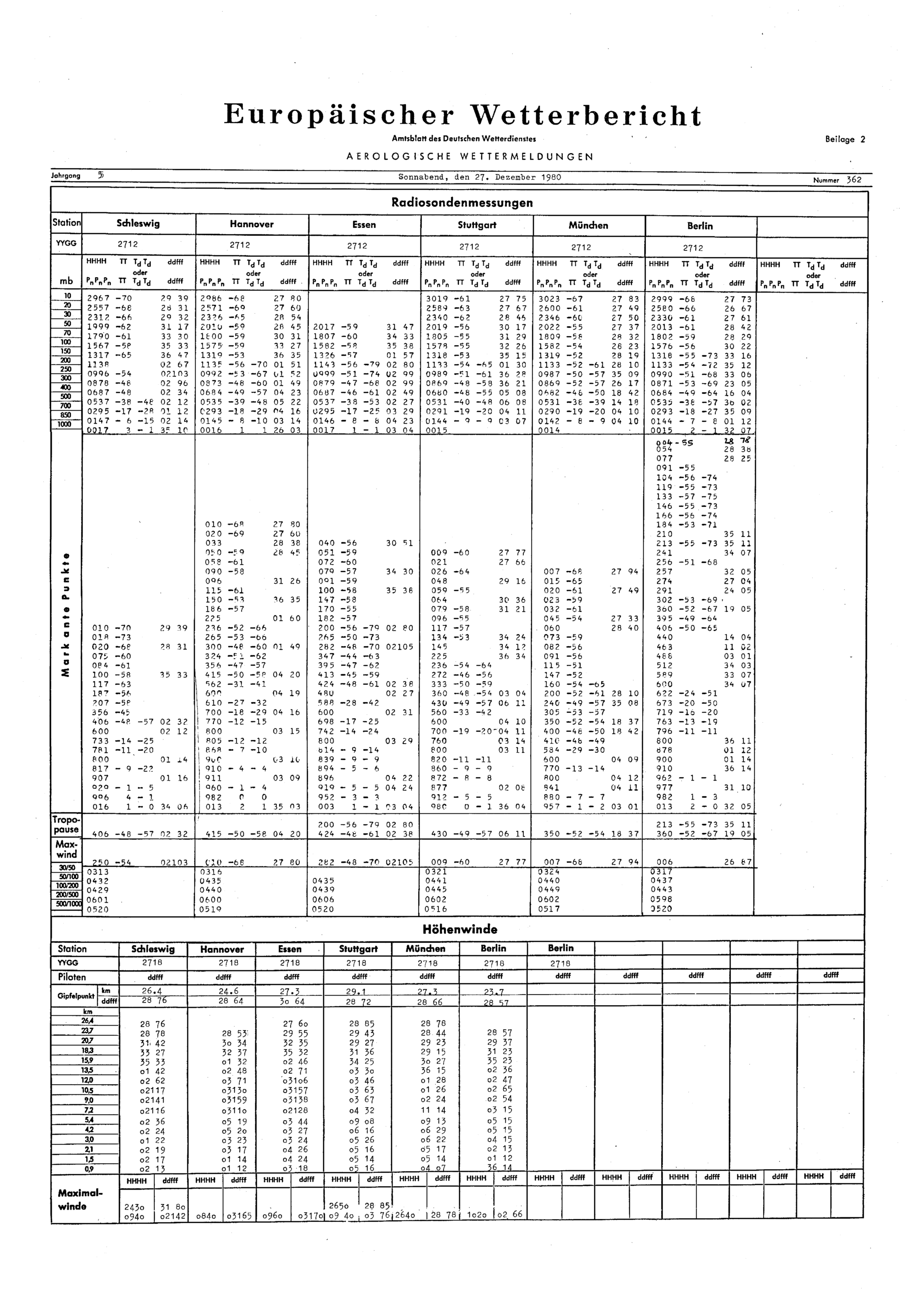 Europäischer Wetterbericht. Beilage 1, Bodenwettermeldungen. 1976-1994