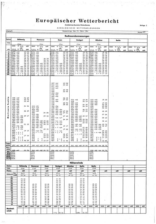 Europäischer Wetterbericht. Beilage 1, Bodenwettermeldungen. 1976-1994
