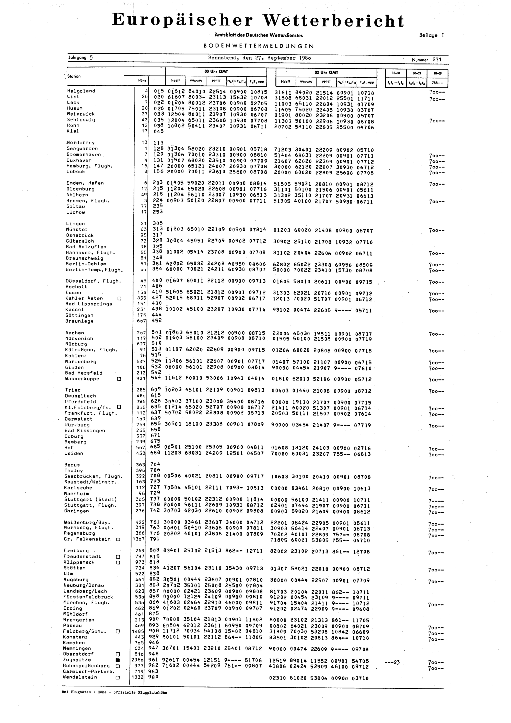 Europäischer Wetterbericht. Beilage 1, Bodenwettermeldungen. 1976-1994