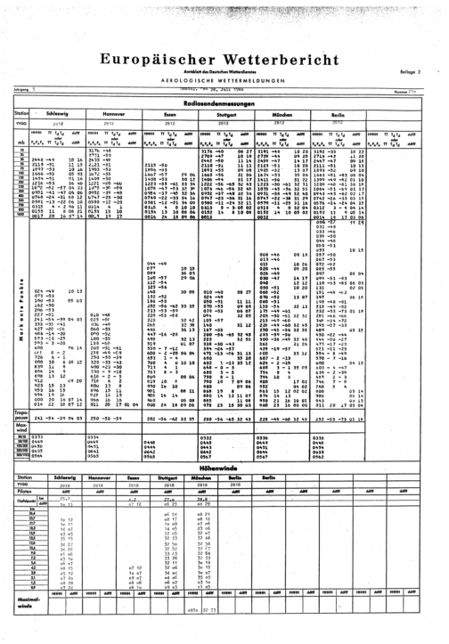 Europäischer Wetterbericht. Beilage 1, Bodenwettermeldungen. 1976-1994