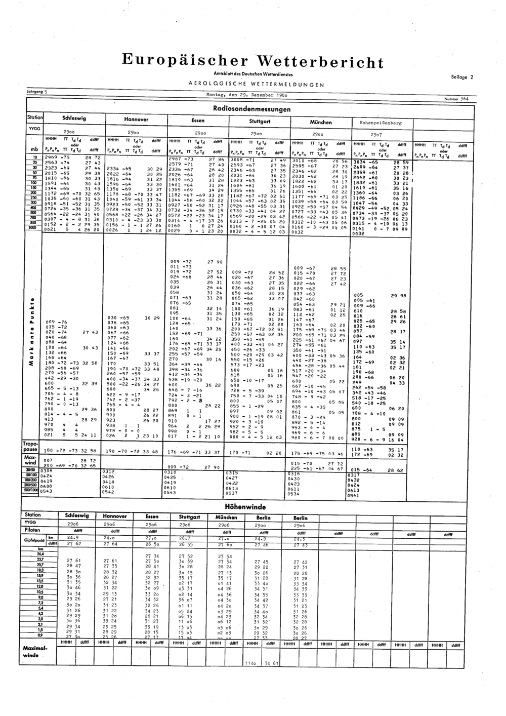 Europäischer Wetterbericht. Beilage 1, Bodenwettermeldungen. 1976-1994