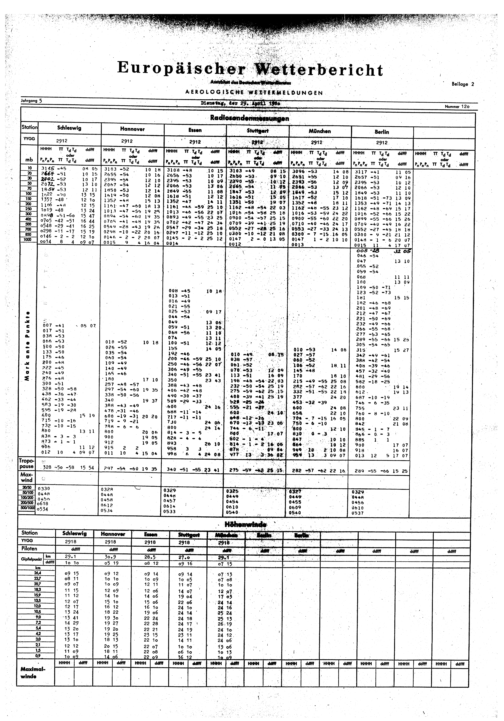 Europäischer Wetterbericht. Beilage 1, Bodenwettermeldungen. 1976-1994