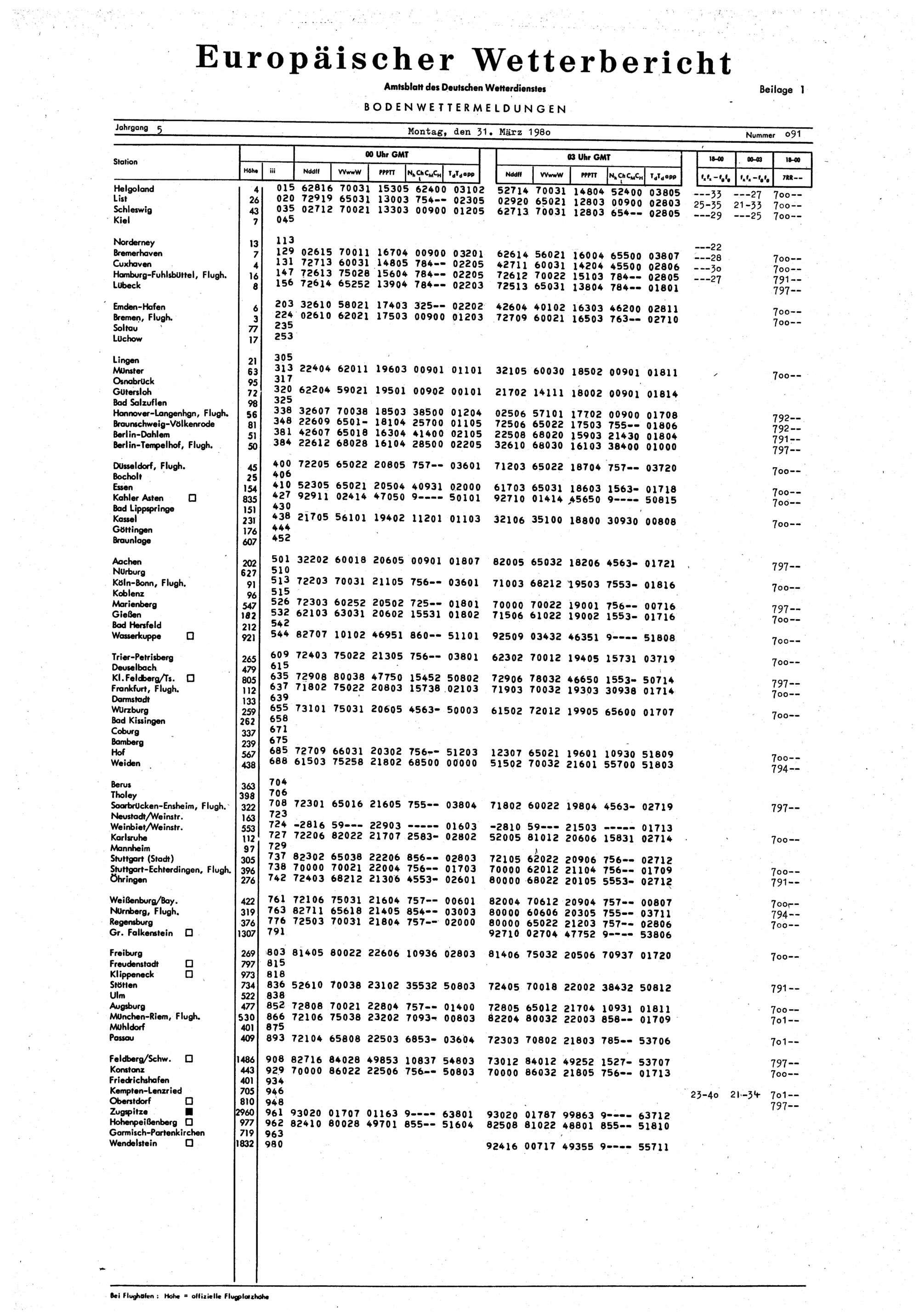 Europäischer Wetterbericht. Beilage 1, Bodenwettermeldungen. 1976-1994