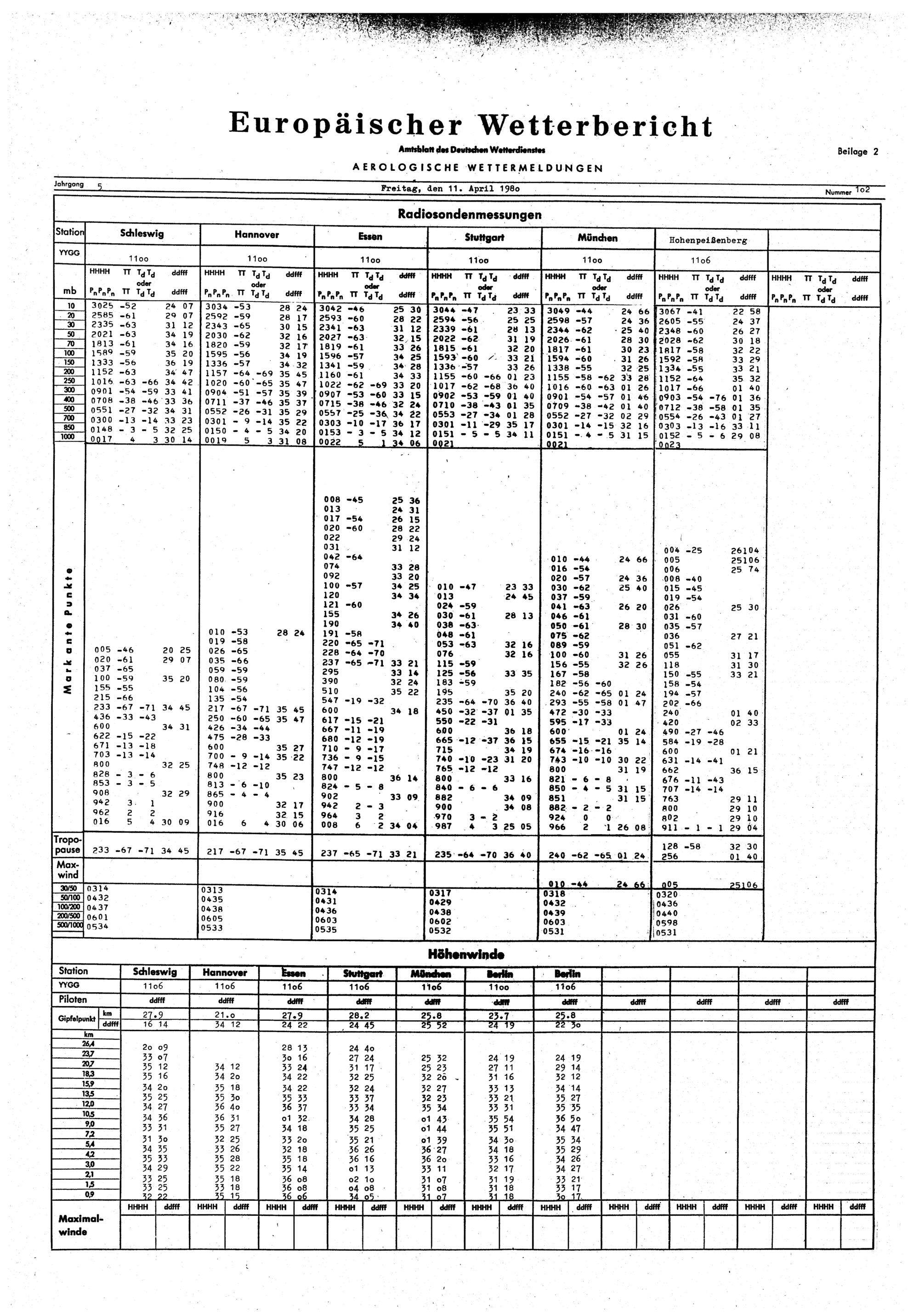 Europäischer Wetterbericht. Beilage 1, Bodenwettermeldungen. 1976-1994