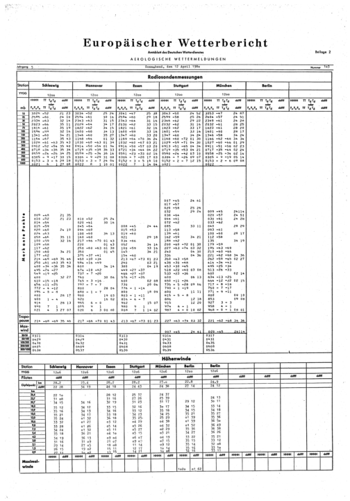 Europäischer Wetterbericht. Beilage 1, Bodenwettermeldungen. 1976-1994