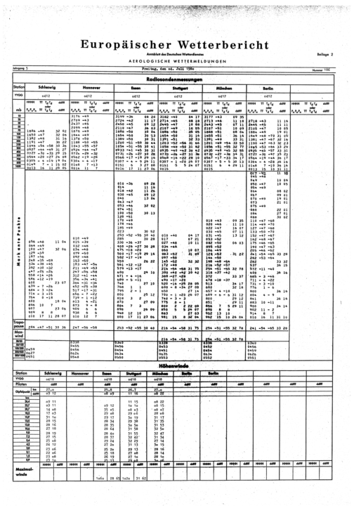 Europäischer Wetterbericht. Beilage 1, Bodenwettermeldungen. 1976-1994