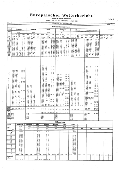 Europäischer Wetterbericht. Beilage 1, Bodenwettermeldungen. 1976-1994