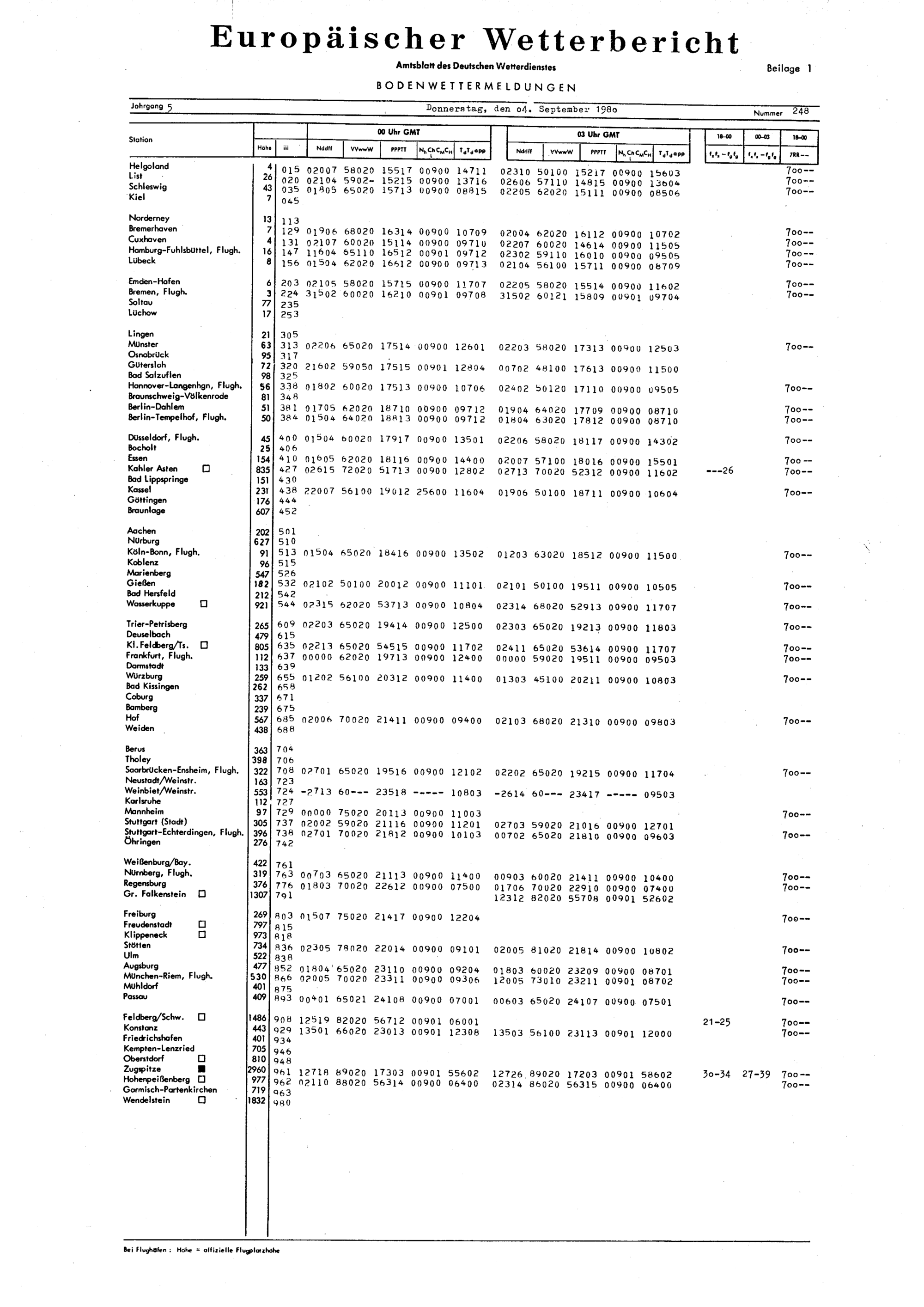 Europäischer Wetterbericht. Beilage 1, Bodenwettermeldungen. 1976-1994