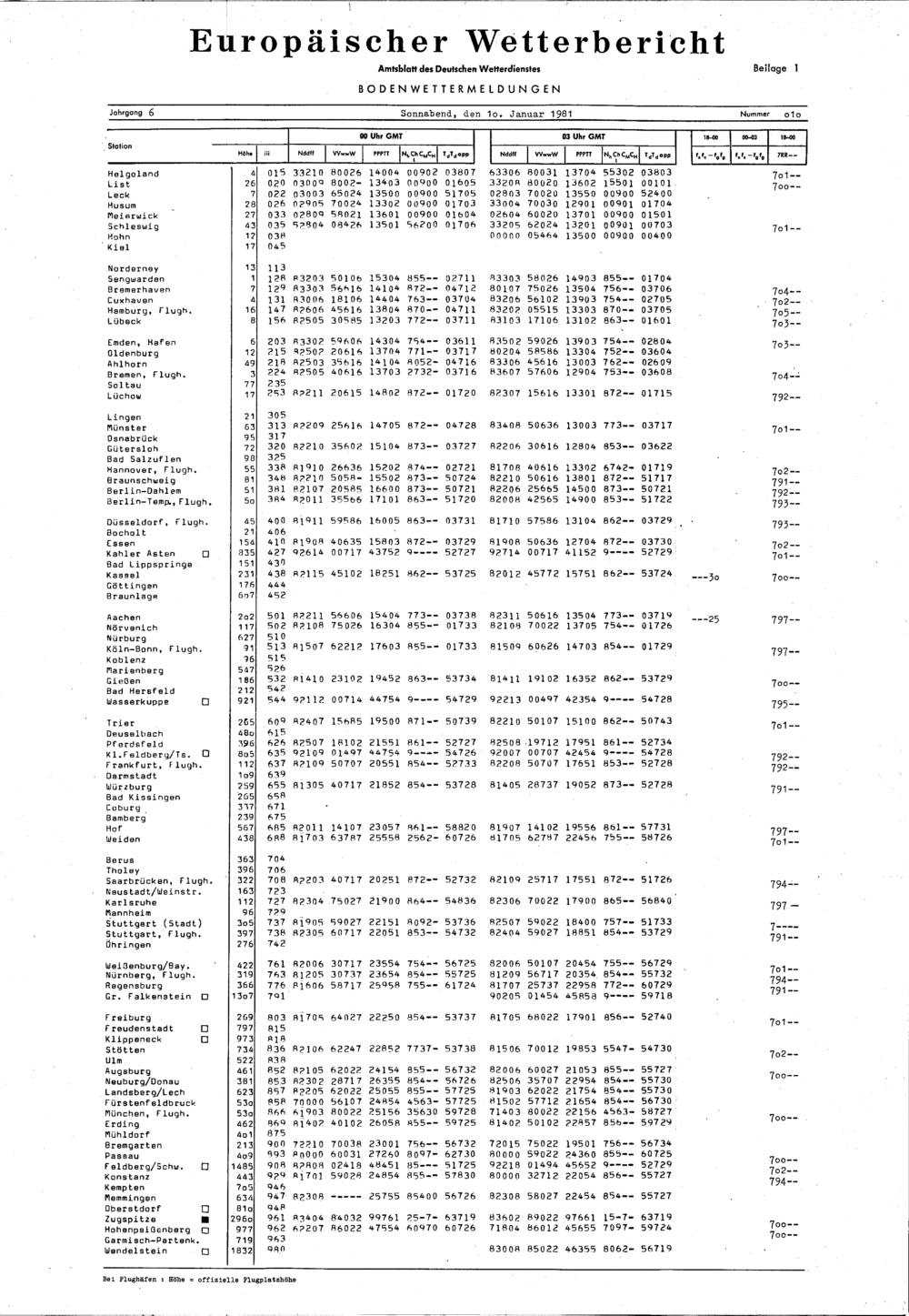 Europäischer Wetterbericht. Beilage 1, Bodenwettermeldungen. 1976-1994