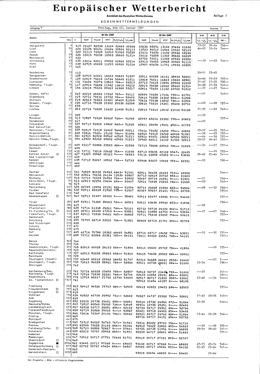 Europäischer Wetterbericht. Beilage 1, Bodenwettermeldungen. 1976-1994