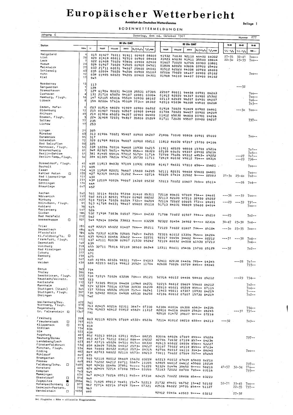 Europäischer Wetterbericht. Beilage 1, Bodenwettermeldungen. 1976-1994