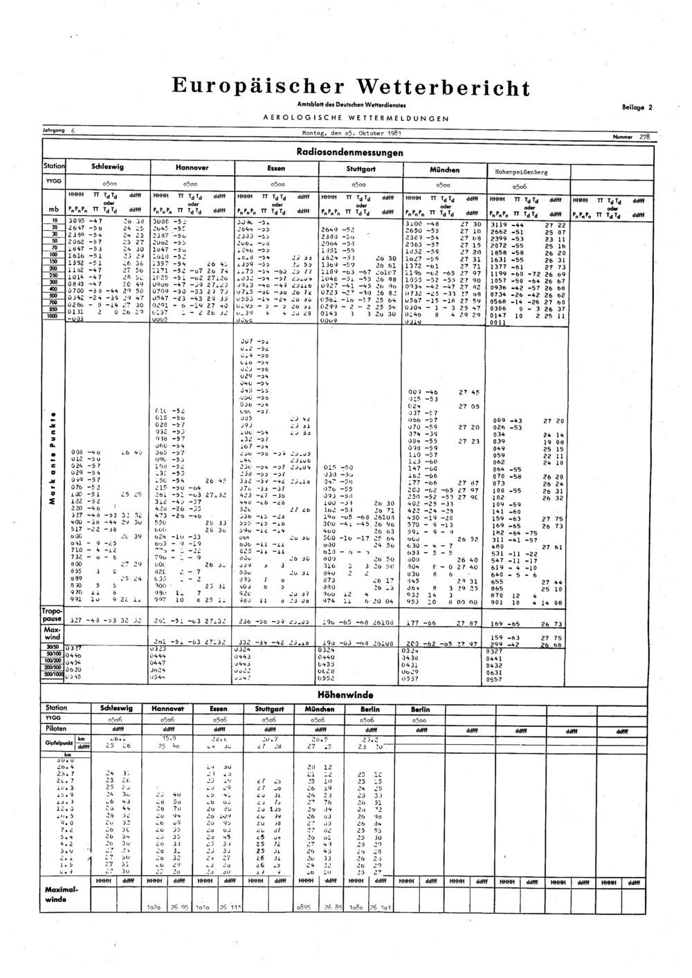 Europäischer Wetterbericht. Beilage 1, Bodenwettermeldungen. 1976-1994