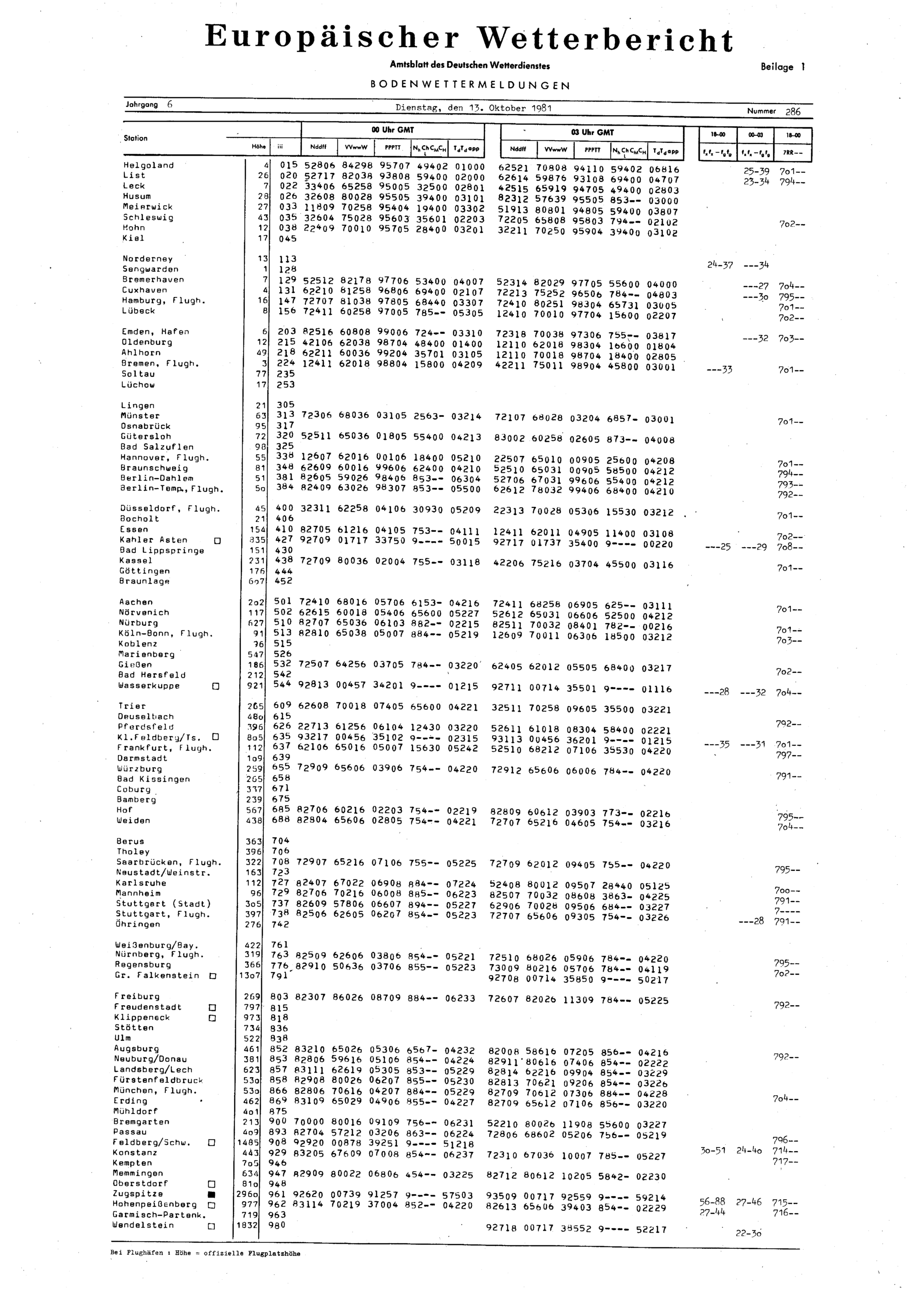 Europäischer Wetterbericht. Beilage 1, Bodenwettermeldungen. 1976-1994