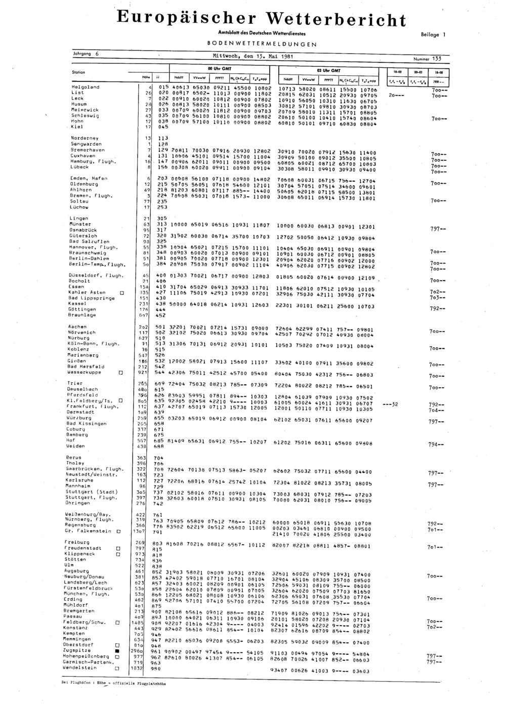Europäischer Wetterbericht. Beilage 1, Bodenwettermeldungen. 1976-1994