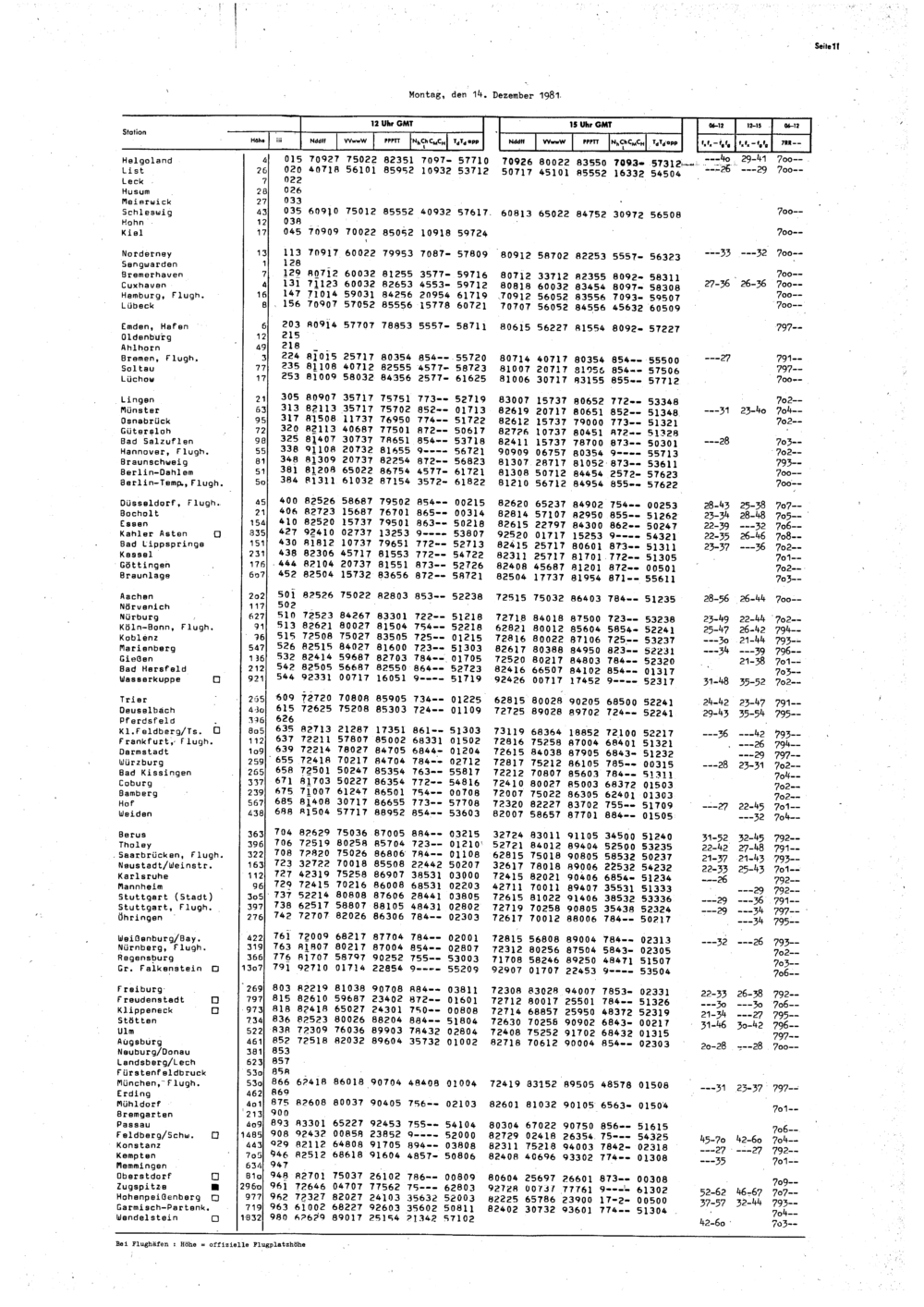 Europäischer Wetterbericht. Beilage 1, Bodenwettermeldungen. 1976-1994