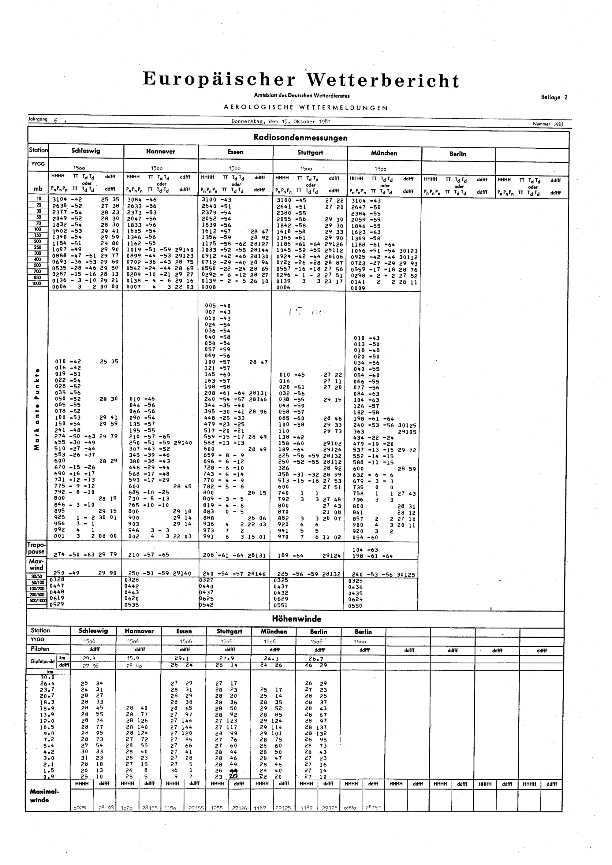 Europäischer Wetterbericht. Beilage 1, Bodenwettermeldungen. 1976-1994