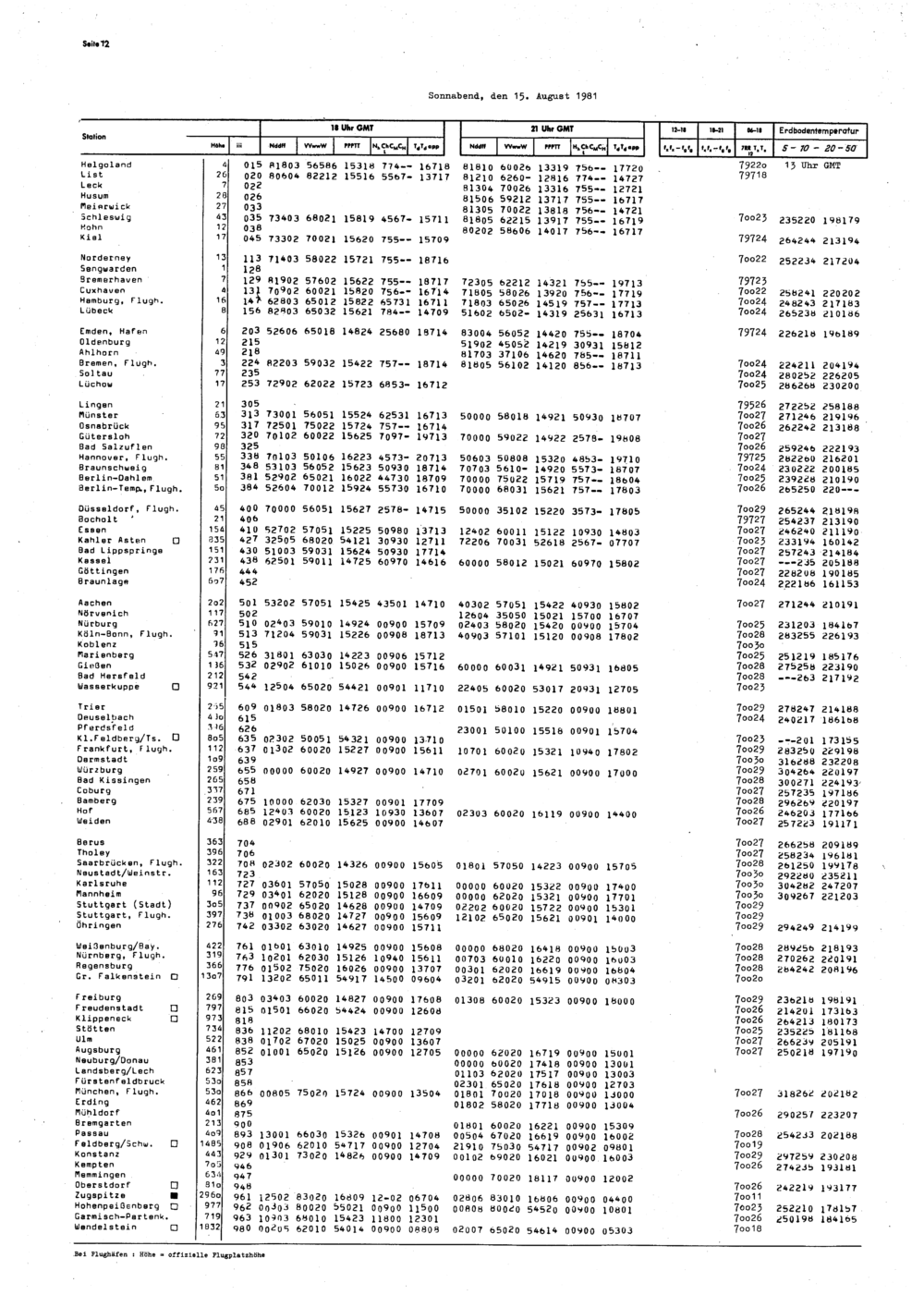 Europäischer Wetterbericht. Beilage 1, Bodenwettermeldungen. 1976-1994