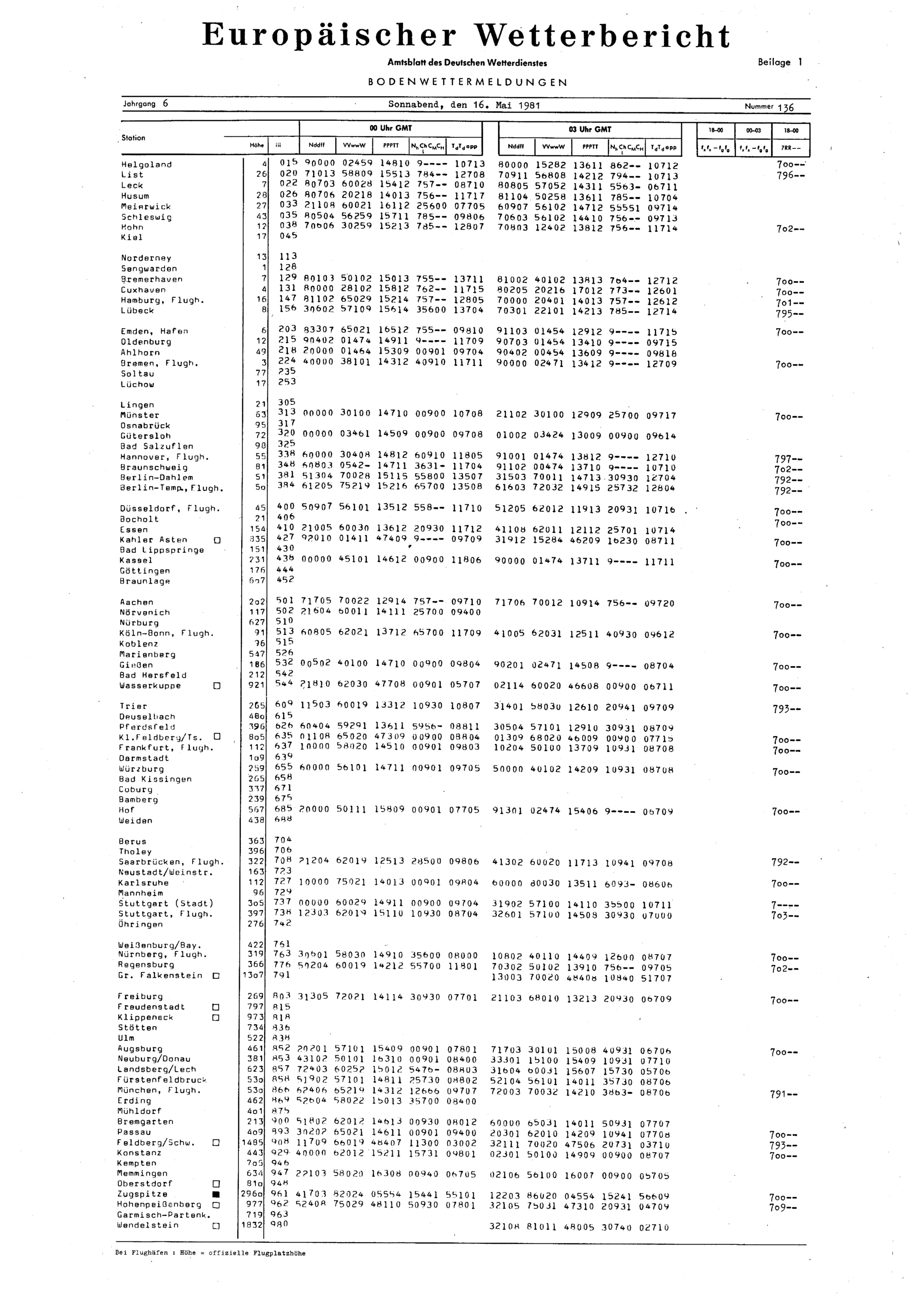 Europäischer Wetterbericht. Beilage 1, Bodenwettermeldungen. 1976-1994
