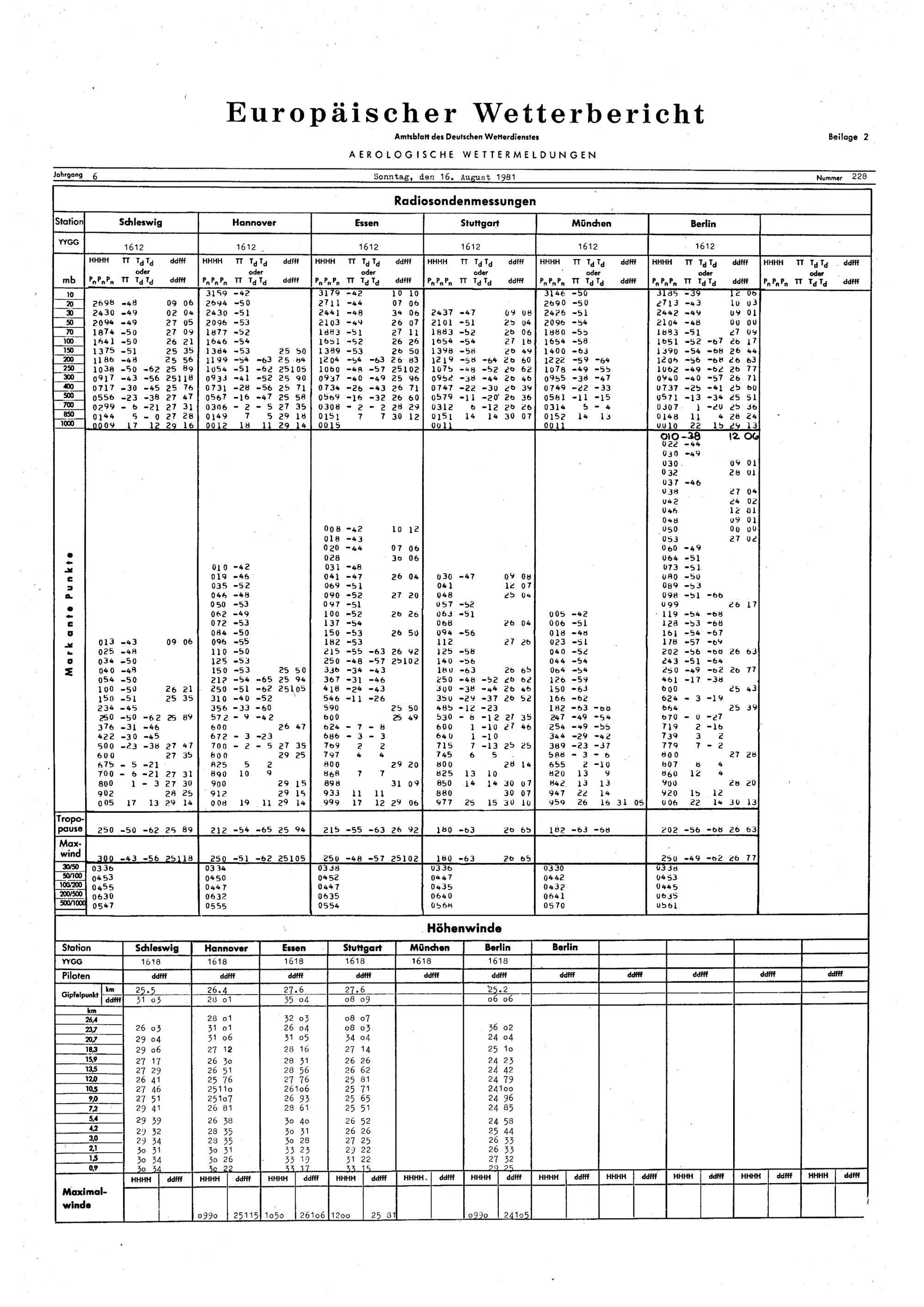 Europäischer Wetterbericht. Beilage 1, Bodenwettermeldungen. 1976-1994