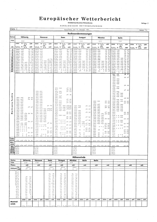 Europäischer Wetterbericht. Beilage 1, Bodenwettermeldungen. 1976-1994