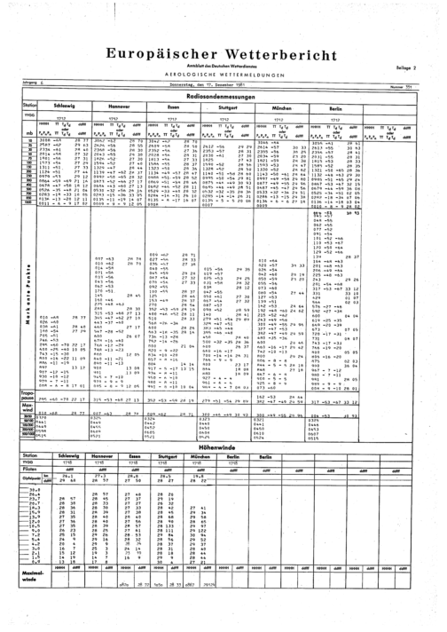 Europäischer Wetterbericht. Beilage 1, Bodenwettermeldungen. 1976-1994
