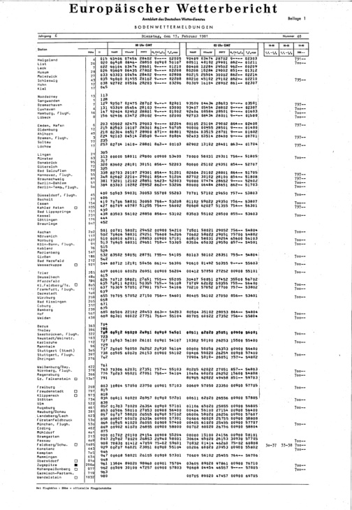 Europäischer Wetterbericht. Beilage 1, Bodenwettermeldungen. 1976-1994