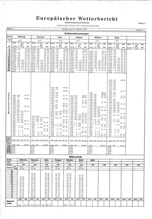 Europäischer Wetterbericht. Beilage 1, Bodenwettermeldungen. 1976-1994