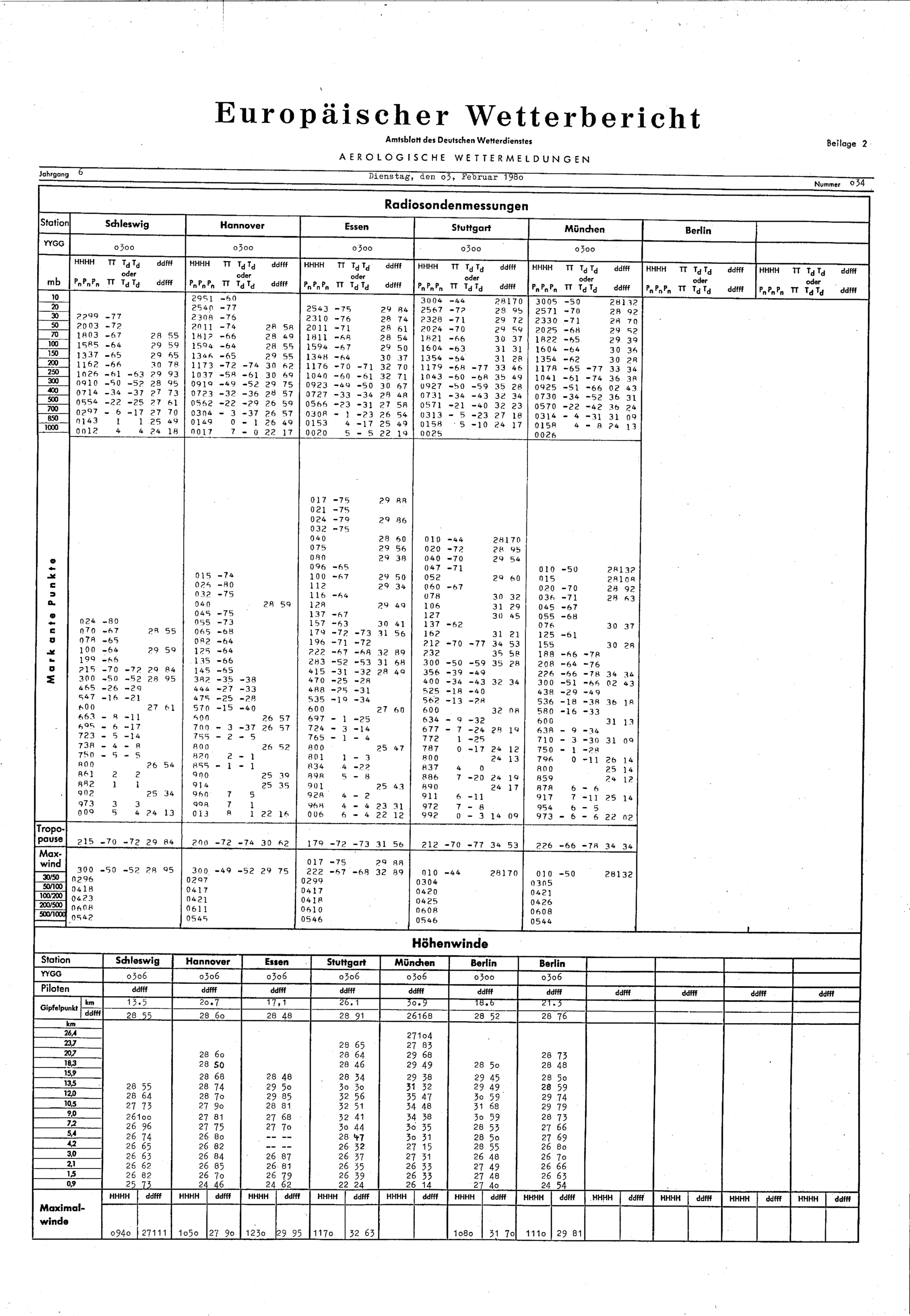 Europäischer Wetterbericht. Beilage 1, Bodenwettermeldungen. 1976-1994