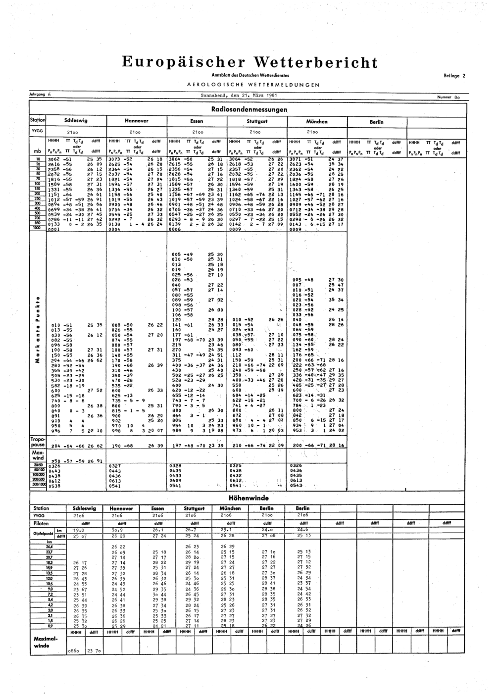 Europäischer Wetterbericht. Beilage 1, Bodenwettermeldungen. 1976-1994