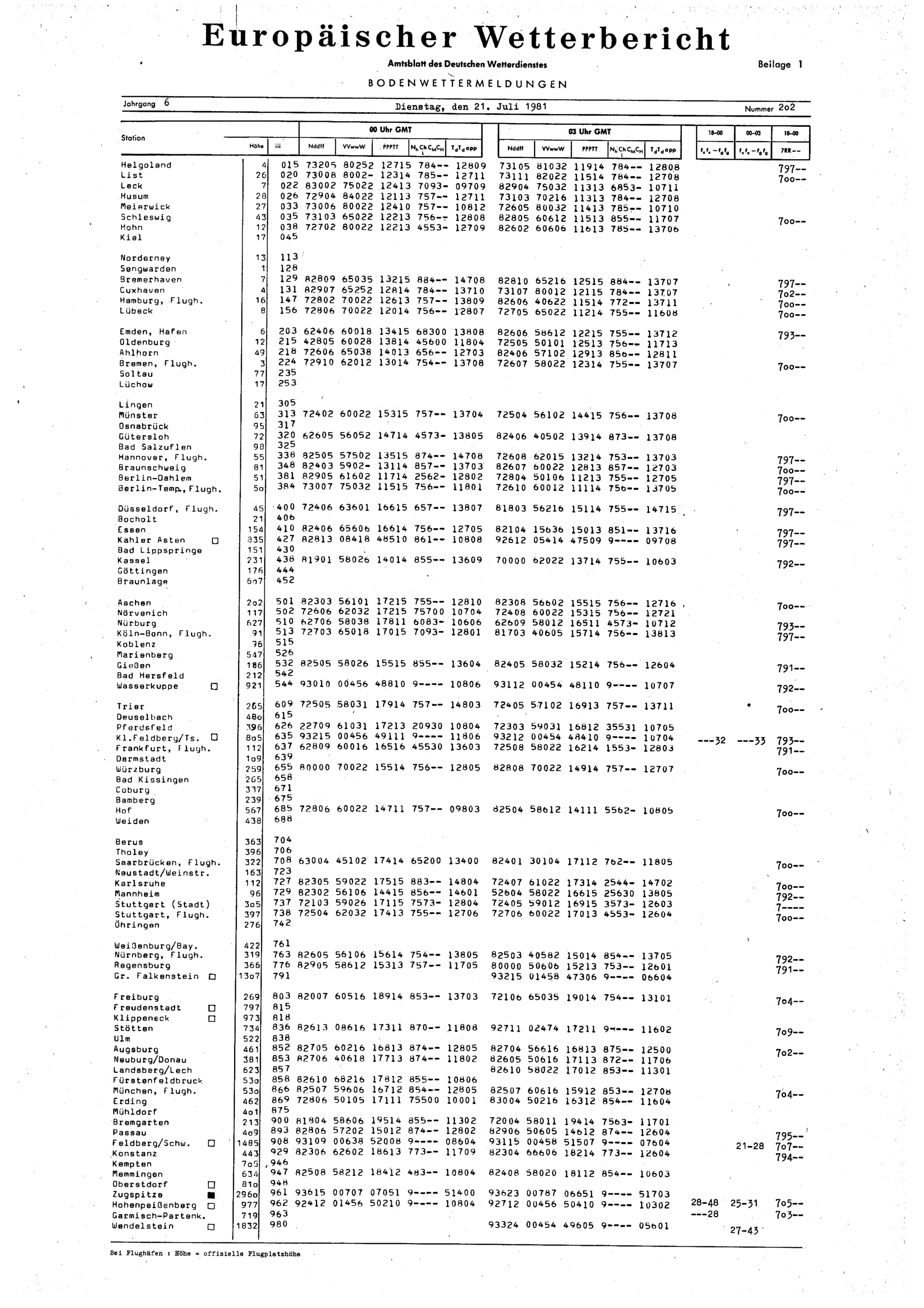 Europäischer Wetterbericht. Beilage 1, Bodenwettermeldungen. 1976-1994