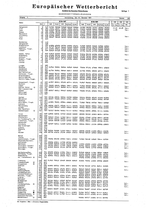 Europäischer Wetterbericht. Beilage 1, Bodenwettermeldungen. 1976-1994